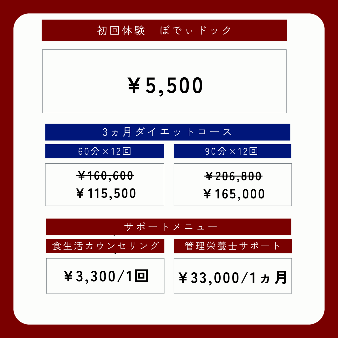 プロのパーソナルトレーナーの目線からお客様の理想の未来に向かって安全かつ効果的なサポートをお約束しております。